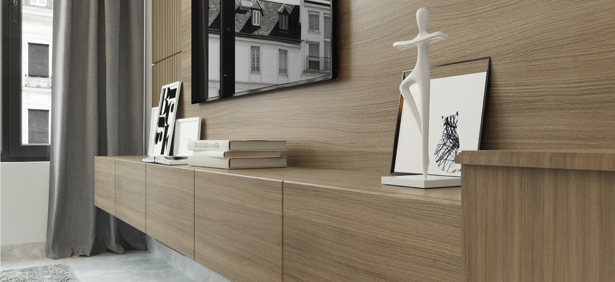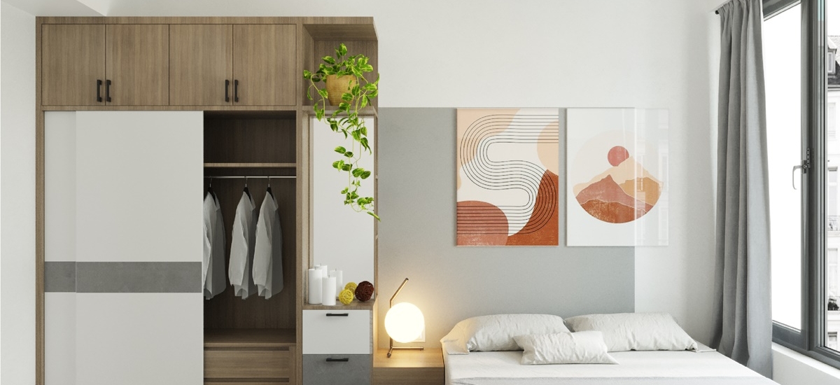 Bên cạnh đó, không thể kể đến chiếc tủ lưu trữ với thiết kế cửa trượt, vừa giúp tiết kiệm diện tích vừa đem đến sự thẩm mỹ tổng quan không gian phòng.
