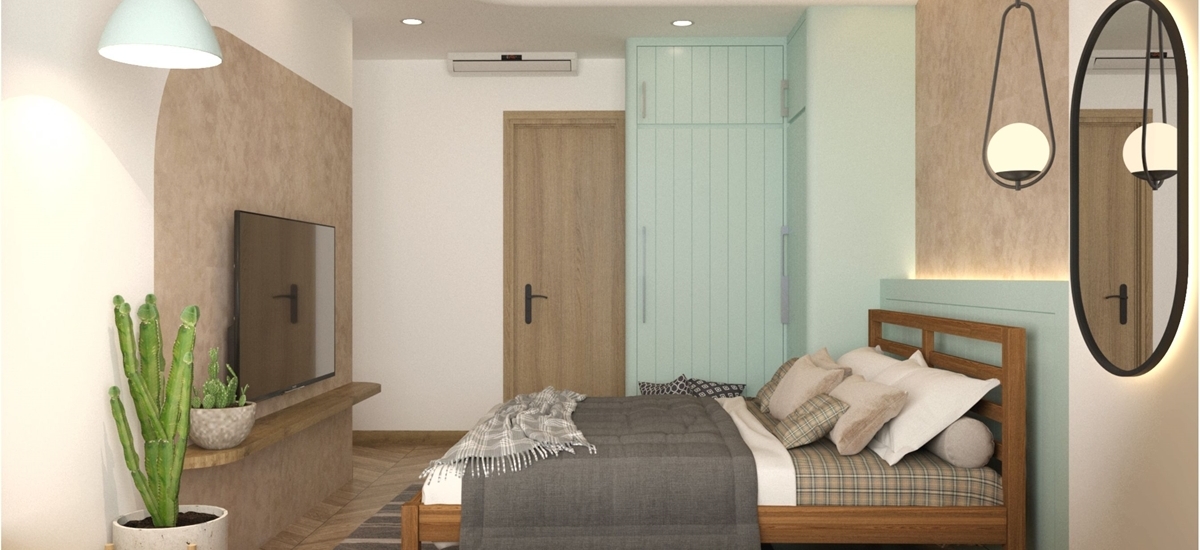 Phòng ngủ Master toát lên vẻ đẹp nhẹ nhàng và đơn giản. Nơi đây không chỉ đơn thuần là nơi nghỉ ngơi, thư giãn, mà nó còn là nơi thể hiện được cá tính và phong cách sống của gia chủ. Thiết kế nội thất phòng ngủ tạo nên sự ấn tượng với chiếc giường gỗ có chân mộc mạc, tủ quần áo chạm trần chữ L tiện nghi,…Tất cả đều được kết hợp hài hòa, khéo léo và ăn khớp với nhau từ tỉ lệ kích thước cho đến màu sắc.