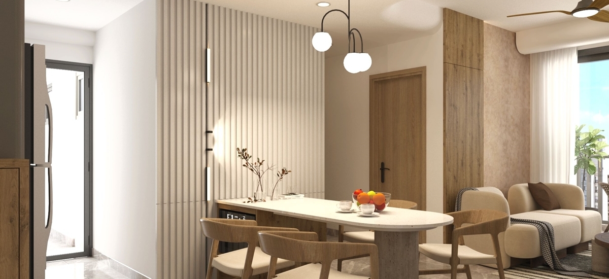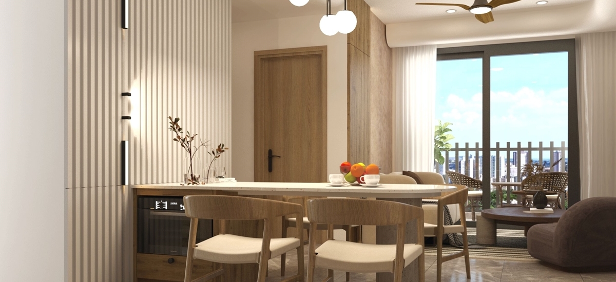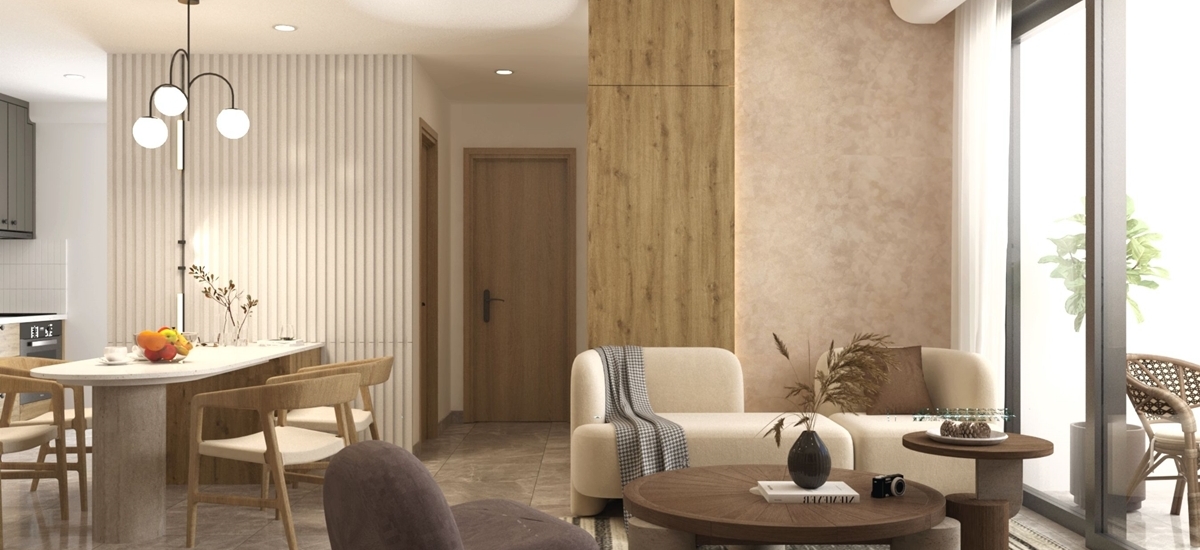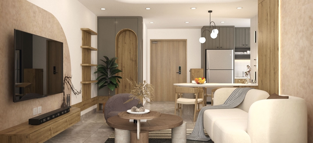 Bên cạnh đó, nội thất sẽ được chọn các chất liệu có gam màu tương xứng với căn hộ. Từ đó, tạo nên sự liền mạch và thống nhất cho không gian, đem đến vẻ đẹp tinh tế, ấm cúng.