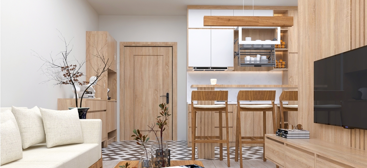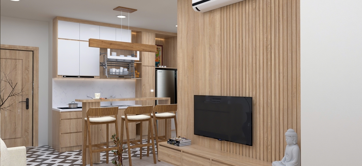 Qua quá trình trao đổi với gia chủ, O Interior đã có thêm nhiều ý tưởng sáng tạo để tạo ra bản thiết kế hoàn hảo nhất. Để căn hộ có được sự tiện nghi, thẩm mỹ và tạo cảm giác thư giãn, đội ngũ đã ưu tiên lựa chọn sắc trắng làm gam màu chủ đạo. Tiếp đến là kết hợp với màu gỗ sáng nhằm đảm bảo được tính chất thuần túy từ phong cách Nhật Bản.