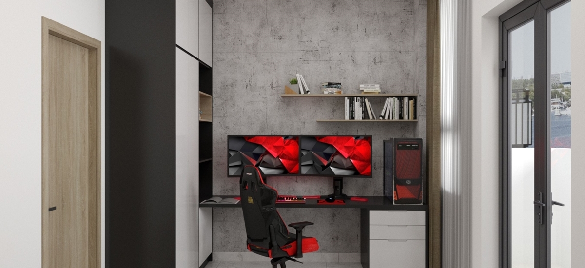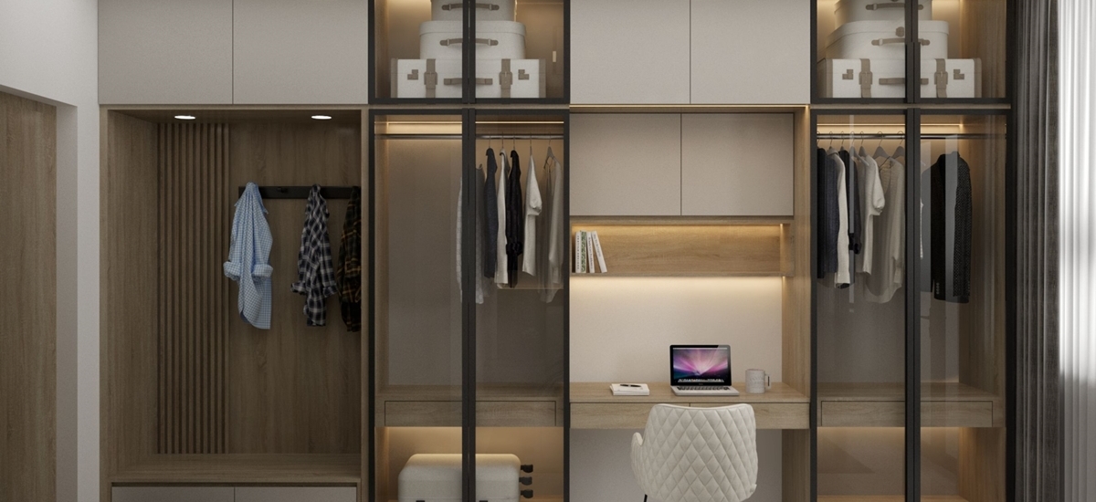 Bên cạnh tủ quần áo của phòng ngủ Master, gia chủ còn yêu cầu phân bổ thêm khu vực lưu trữ đồ ở một phòng riêng để tăng diện tích cất giữ đồ đặc. Thuận tiện hơn nữa đó là kết hợp để làm khu vực làm việc thứ 2 khi cần sự riêng tư.